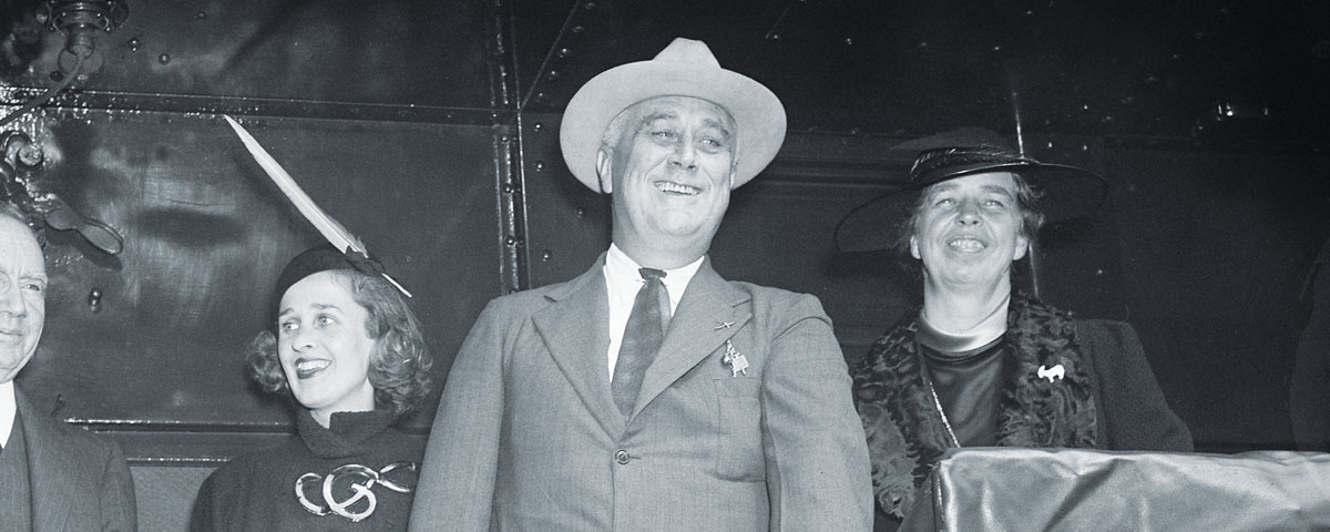 In the spring, as the high court struck multiple times at federal and state regulation of the economy, Roosevelt tended his garden of political support, meeting with John L. Lewis of the United Mine Workers. By the time Democrats assembled in Philadelphia for a thoroughly scripted convention, FDR was in control. In the years since polio had cost him the use of his legs, he had honed his public life into a stellar performance as a man able to walk, managing through will and upper body strength to pivot from foot to foot provided someone, often son James, held him up. Not only Roosevelt but the country wanted to believe he was physically whole—an illusion always imperiled, as when, on June 26, 1936, FDR arrived by train from Washington at Philadelphia’s 24th Street station. Rain had been falling for hours; he was to speak in 35 minutes. At Franklin Field, his car went up an uncovered but curtained-off ramp. Out of sight from all but those in the platform party, the president was taken out of his car. His braces locked, he began his slow upward progress on James’s arm. Near the top, about to face the stadium’s thousands of occupants, Roosevelt leaned or reached to greet someone he knew and, still unseen by the crowd, lost his balance and was allowed to fall, facedown, on the wet, muddy ramp, his speech pages scattering. “Clean me up,” he barked furiously, and as his security people got him quickly to his feet and retrieved the now mud-daubed pages, he resumed his slow ascent. Seeing none of this, New York Times reporter Arthur Krock wrote, “One hundred thousand people rose and roared unmistakable acclaim as Mr. Roosevelt entered.” After brief remarks by a senator, the president came to the rostrum on James’s arm and began to speak. Even today, listening to his cool, measured delivery, it is difficult to accept that just minutes before, he had been badly shaken and was, as he later told his secretary, Grace Tully, “the damned, maddest white man…you ever saw.”