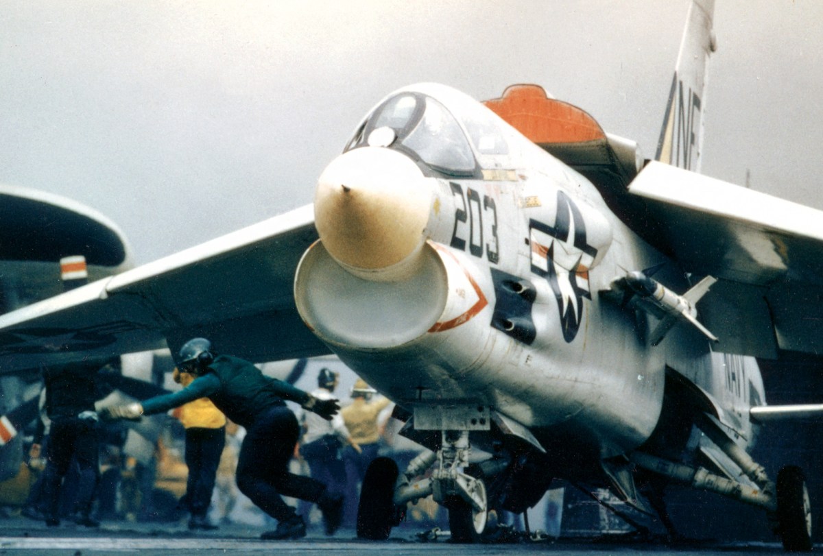 The Crusader remained in first-line U.S. Navy service until 1976, when the last of the Oriskany-class carriers was decommissioned. But that didn’t mark the end of the F-8’s combat career.