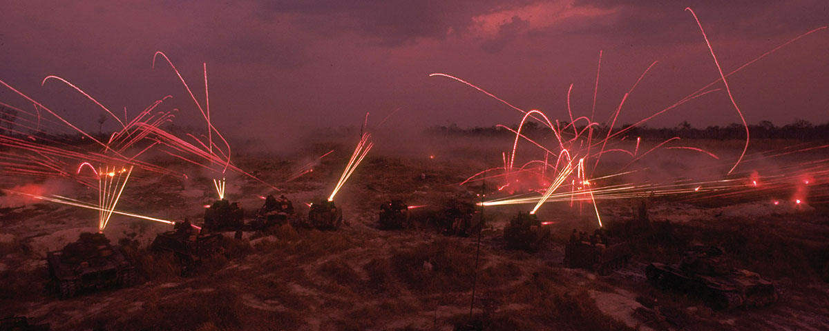 For a while both sides were forced to shoot blind at muzzle flashes, with little or no effect. Then some 15 NVA tanks began maneuvering around the 69th Armor’s left flank, toward the airstrip. There the American M48s started scoring hits, destroying two North Vietnamese PT-76s and a BTR-50. The NVA tankers countered with a direct hit on an M48, killing the machine gun loader and gunner. They then withdrew.
