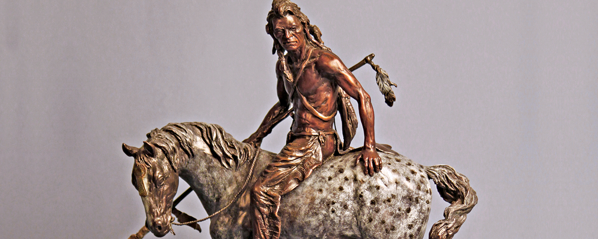 A lance-bearing Nez Perce warrior mounted on a spotted Appaloosa crosses the high plateau in the 1840s, the rider drawn to something in the distance. In 2011 when sculptor Mari Bolen rendered the 14-by-13-by-4-inch bronze Appaloosa (in an edition of 50), she hoped most of all to capture the dignity of the Nez Perce people.