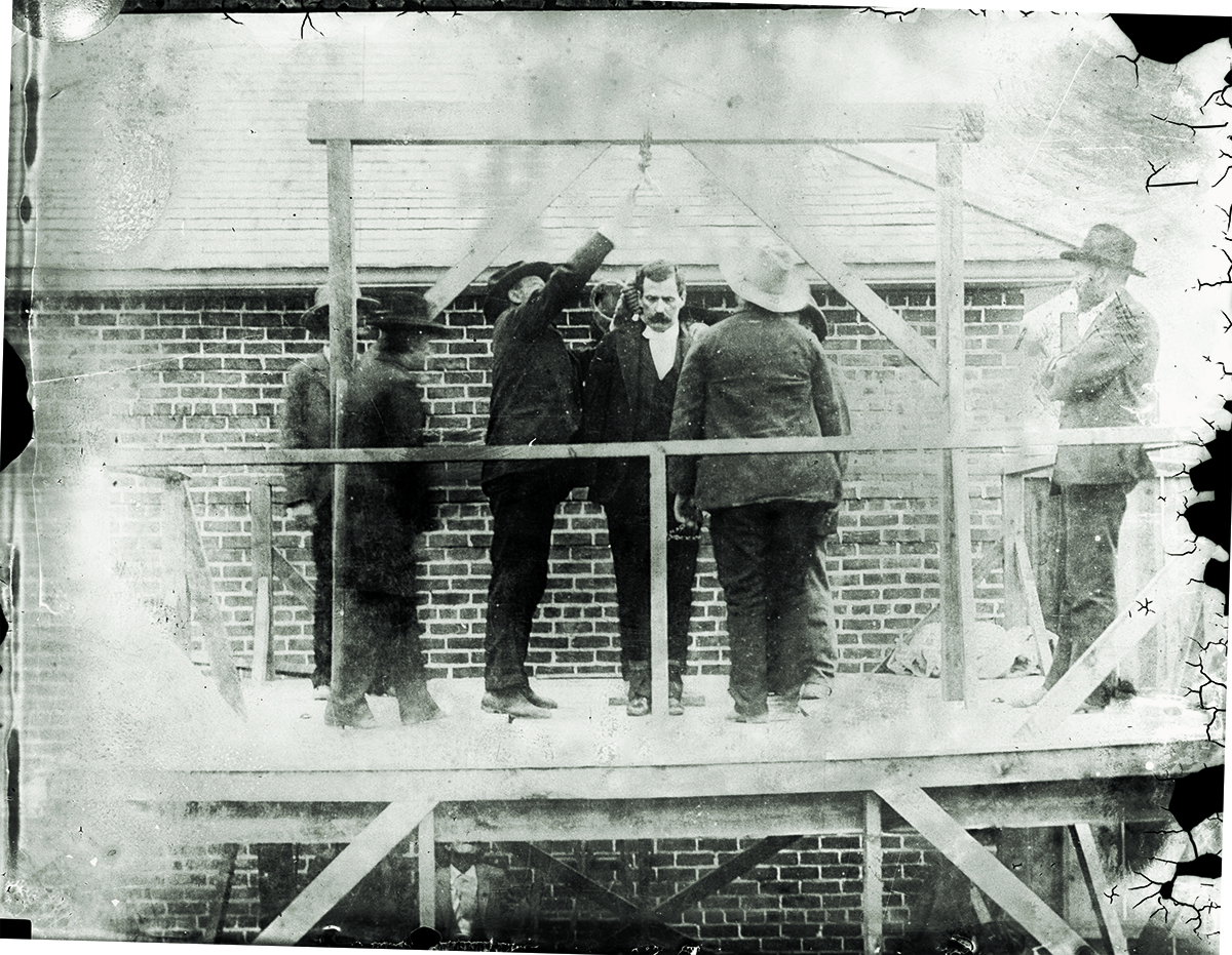 Outlaw Tom “Black Jack” Ketchum partnered with older brother Sam, robbing businesses and trains. The brothers later joined the notorious Hole-in-the-Wall Gang. In 1899 Tom foolishly attempted to rob the same train at the same spot brother Sam had held it up weeks earlier (to Sam’s demise). This time the engineer recognized Tom and shot him from his horse. Captured and convicted, Black Jack went to the gallows on April 26, 1901, in Clayton, which had never hanged anyone before. The rope proved too long, and as Ketchum had gained weight in prison, his head snapped off when his body dropped through the trap. All of him is buried in Clayton’s cemetery.