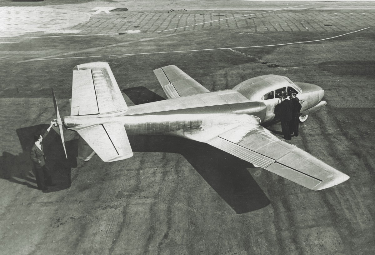 The name Cloudster was briefly revived in the 1940s, when the Douglas Aircraft Company developed a medium bomber with two engines in the aft fuselage, powering a pusher propeller. First flying in 1944, the XB-42 “Mixmaster” did not attain production. Thinking ahead of what was shaping up to be a victorious war, Douglas worked on some derivatives: a medium-range airliner designated the DC-8, which never flew, and a light plane for executive or charter use, which reached the prototype stage and was dubbed the Model 1015 Cloudster II.