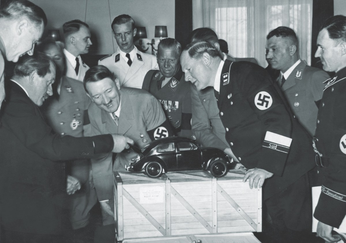 Perhaps the best-known of De Jong’s subjects is Ferdinand Porsche, the brilliant self-taught engineer born in 1875 who truly was a pioneer in the auto world. In 1933 Porsche sent Hitler a fawning telegram that led to enthusiastic cooperation between the two. Both Porsche and his son Ferry willingly became members of the SS, as well as the Nazi Party. They championed the idea of a people’s car, or “Volkswagen,” which Porsche would go on to build. In 1938 Hitler presided over the groundbreaking for a giant factory at Wolfsburg that is, even today, home to the Volkswagen Group.