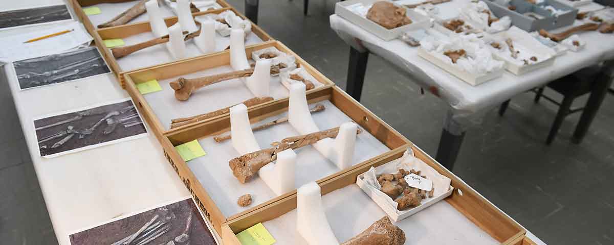 In 2014, Manassas National Battlefield Park employees digging a maintenance trench discovered evidence of a burial pit. NPS experts, assisted by Douglas Owsley and Kari Bruwelheide, forensic anthropologists at the Smithsonian’s National Museum of Natural History, excavated and studied the site in October 2015. Two complete sets of remains, 11 amputated partial limbs, and several artifacts were recovered from the burial site, associated with the location of a field hospital from the Second Battle of Bull Run.