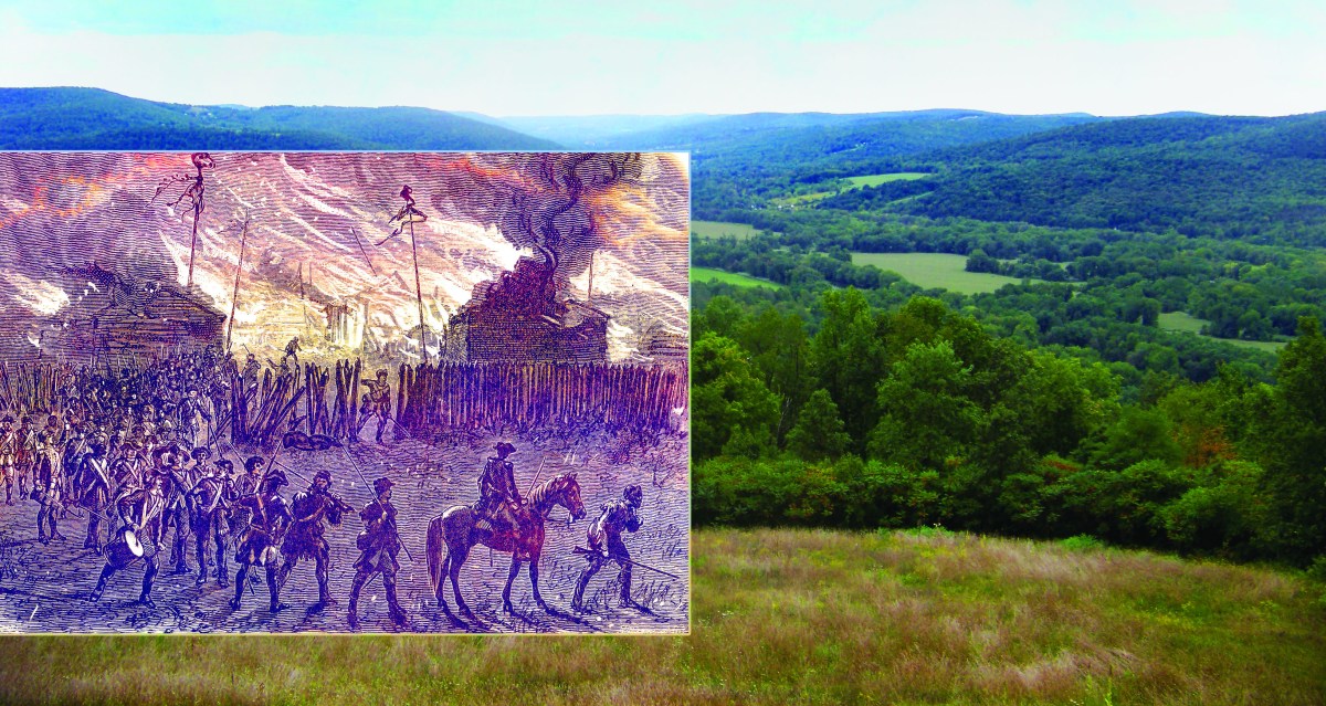 While much of the present-day 2,100-acre historic site is in private hands, the 372-acre Newtown Battlefield State Park, centered on Sullivan Hill, sees some 35,000 annual visitors, including campers at the park’s 18 sites and five cabins, as well as deer hunters in the fall. In 1912 state officials erected a monument, and in the 1930s Civilian Conservation Corps crews built many of the park facilities. The site was added to the National Register of Historic Places in 1973. Outside of more cleared land than was the case in 1779, the register notes that “the overall battlefield is otherwise little altered or impaired.” MH