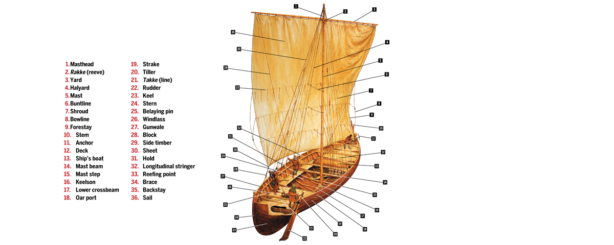 From their first devastating raid on Lindisfarne, England, in 793 Norse Vikings established a seaborne empire with their sleek langskip (longships), whose gracefully curved wooden plank hulls were stout enough to cross oceans yet shallow enough in draft to negotiate inlets and rivers. By the 9th century the establishment of Norse kingdoms, overcrowding and blood feuds drove growing numbers of Norsemen “west over sea” to settle in the Faroes, Shetlands, Orkneys, Hebrides, Iceland, Greenland and, briefly, Vinland (coastal North America). To tackle the challenges of such long voyages and carry the cargo necessary for survival and commerce, the Vikings developed a utilitarian version of their proven vessels—the knarr, or coastal trading ship.