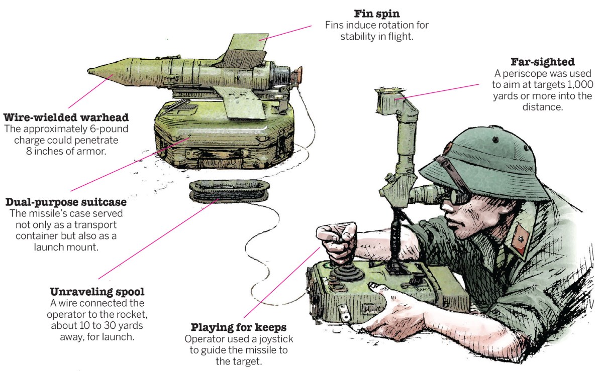 In the early morning of April 23, 1972, a North Vietnamese anti-tank missile company ambushed South Vietnamese tanks from the 20th Armored Squadron outside Dong Ha, in northern South Vietnam near the Demilitarized Zone. The 10-minute engagement destroyed three of the squadron’s M48A2 Patton tanks and several M113 armored personnel carriers. It was the Army of the Republic of Vietnam’s first encounter with the Soviet-built missile, the 9M14 Malyutka, meaning “little one,” and designated by NATO as the AT-3 Sagger.