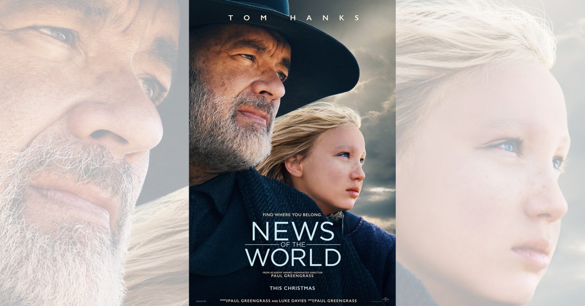 Director Paul Greengrass downshifts from his frenzied action film trademark (e.g., the Bourne series, among others) into News of the World, a more deliberate but nonetheless absorbing road trip across Reconstruction-era Texas based on Paulette Jiles’ 2016 novel of the same name. The driver in this predictable but well-made tale is Captain Jefferson Kyle Kidd (Tom Hanks), a well-read Confederate Civil War veteran who rides from town to town to orate the news from far and wide. On the trail he happens across Johanna Leonberger (Helena Zengel), a lost white girl who’s been raised by the Kiowas as Cicada. She is carrying Indian agent papers that indicate she has an aunt and uncle living on the other side of the state. Unable to get help from either the Army or a friend, Kidd decides to restore her to her family himself.