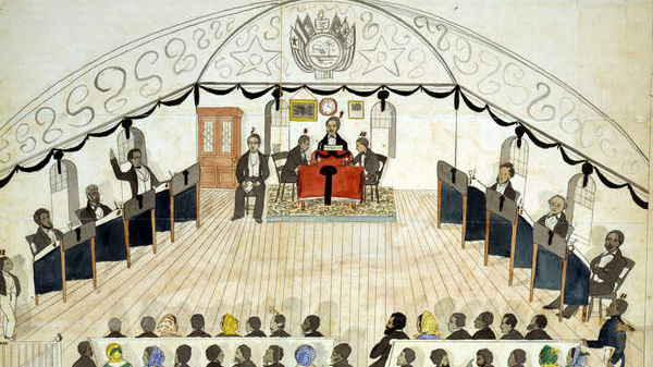 By 1824, colonists, now numbering 1,200, had tired of having a white governor, of that governor having veto power over the assembly, and of their dual allegiance to the Society and the United States. Ashmun worked with the assembly on a new constitution designating the colony Liberia, Latin for “land of the free,” and emulating the U.S. Constitution with a bicameral legislature and a supreme court. The Society still picked the governor, but colonists would elect his deputy and the high sheriff. In gratitude to President Monroe, the Cape Mesurado settlement renamed itself Monrovia. Most emigrants became farmers. A few acquired palm oil and coffee plantations. Nearly all males served in a militia raised to respond to threats from neighboring tribes or slavers. Residents’ letters to the United States convey a sense of mission. Joseph Jenkins Roberts, a freedman and barber from Virginia, sailed for Liberia in February 1829 with his mother and five siblings. In Monrovia, Roberts and two of his brothers began exporting palm products, camwood used for scented soaps, and ivory to the United States, meanwhile importing and selling American goods. Roberts was elected high sheriff. Peyton Skipworth wrote of his crops supplying local demands in Liberian towns and his pride to be serving in the Liberian militia. Former slave William Burke closed a letter, “The Lord has blessed me abundantly since my residence in Africa.”