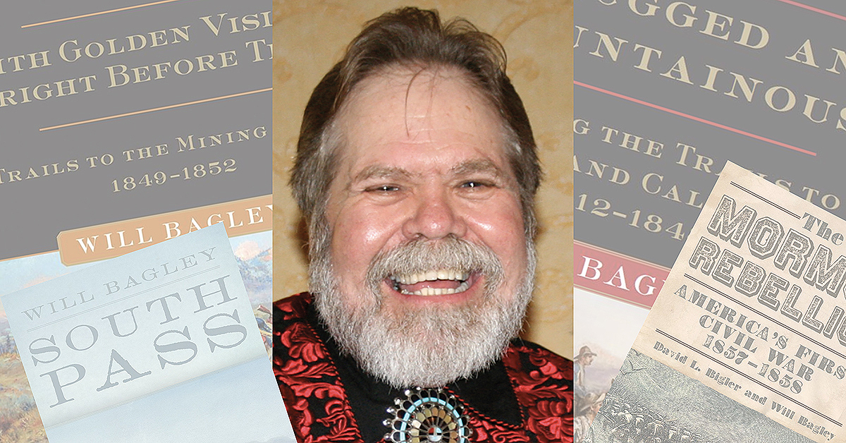 “I must be the world’s luckiest historian,” says Will Bagley, 69, who is best known for monumental nonfiction books about the Mormon West and overland trails published by the University of Oklahoma Press. That may be, but the Salt Lake City–based author is also one of the world’s best historians of the American West. Western Writers of America (WWA) recognizes Bagley this year with its Owen Wister Award for lifetime contributions to Western literature, as well as induction into its Western Writers Hall of Fame, housed at the Buffalo Bill Center of the West in Cody, Wyo. Bagley previously earned WWA Spur Awards for his narrative histories Blood of the Prophets: Brigham Young and the Massacre at Mountain Meadows (2002); The Mormon Rebellion: America’s First Civil War, 1857–1858, co-written by David L. Bigler (2011); and With Golden Visions Bright Before Them: Trails to the Mining West, 1849–1852 (2012). Two of his other books—So Rugged and Mountainous: Blazing the Trails to Oregon and California, 1812–1848 (2010) and South Pass: Gateway to a Continent (2014)—were Spur Award finalists. Bagley recently spoke with Wild West about his work and the august ranks he has joined.