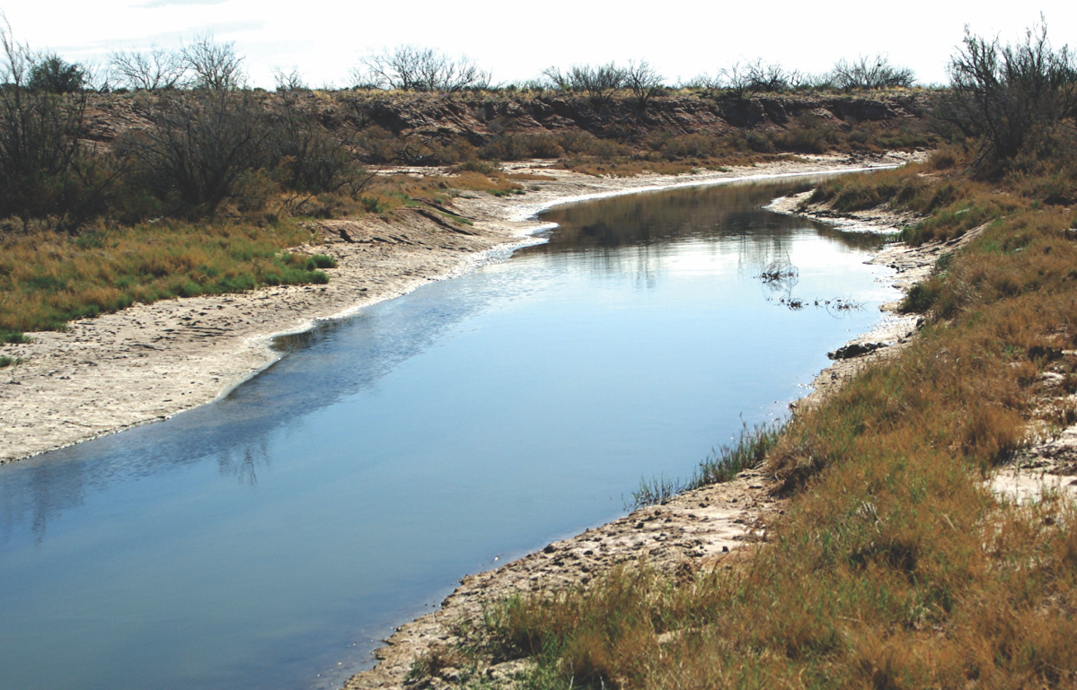 During the following year’s survey U.S. Boundary Commissioner John Russell Bartlett was nearly swept away in the churning waters. “As we approached, we looked in vain for the usual indications of a stream,” he recalled, “for, owing to the want of trees or bushes, it was not seen until we were within a few yards of it.” The channel, he wrote, ran between “high perpendicular banks, cut through various strata of clay and sand.
