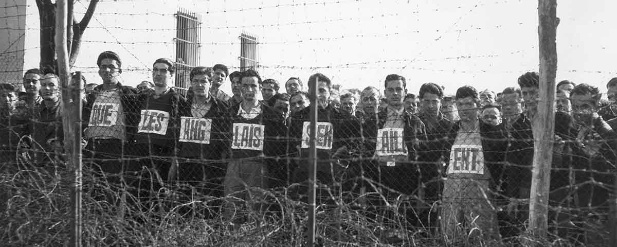 PHOTO: Bitter factionalism made the Greek Civil War especially notable for its atrocities. Here, Greek political prisoners, whose shirts spell out in French “the British must go,” await a United Nations team sent to investigate conditions at a Salonika prison in March 1947. Hulton Archive/Getty Images