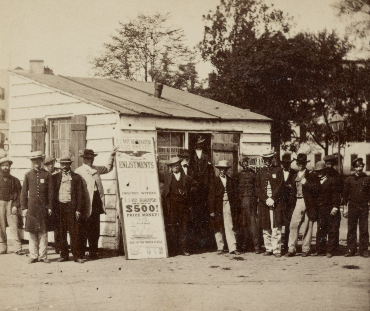 Share This Article Bounty brokers congregate around a U.S. Navy recruitment office hoping to appease potential enlistees with $500 bonuses provided by local, state, or federal agencies. For many, the generous offer was just too good to pass up.