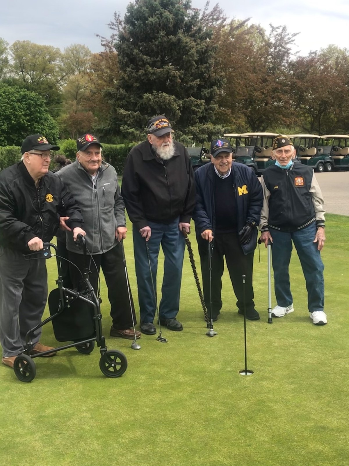 On a cold and blustery Monday — which is all anyone can expect from a spring morning in Michigan — three centennial Marines and two 100-year-old Army veterans sat poised to face off for their equivalent of The Masters. While no Green Jacket was on the line, pride certainly was as the veterans teed off at the Dearborn Hills Golf Course.