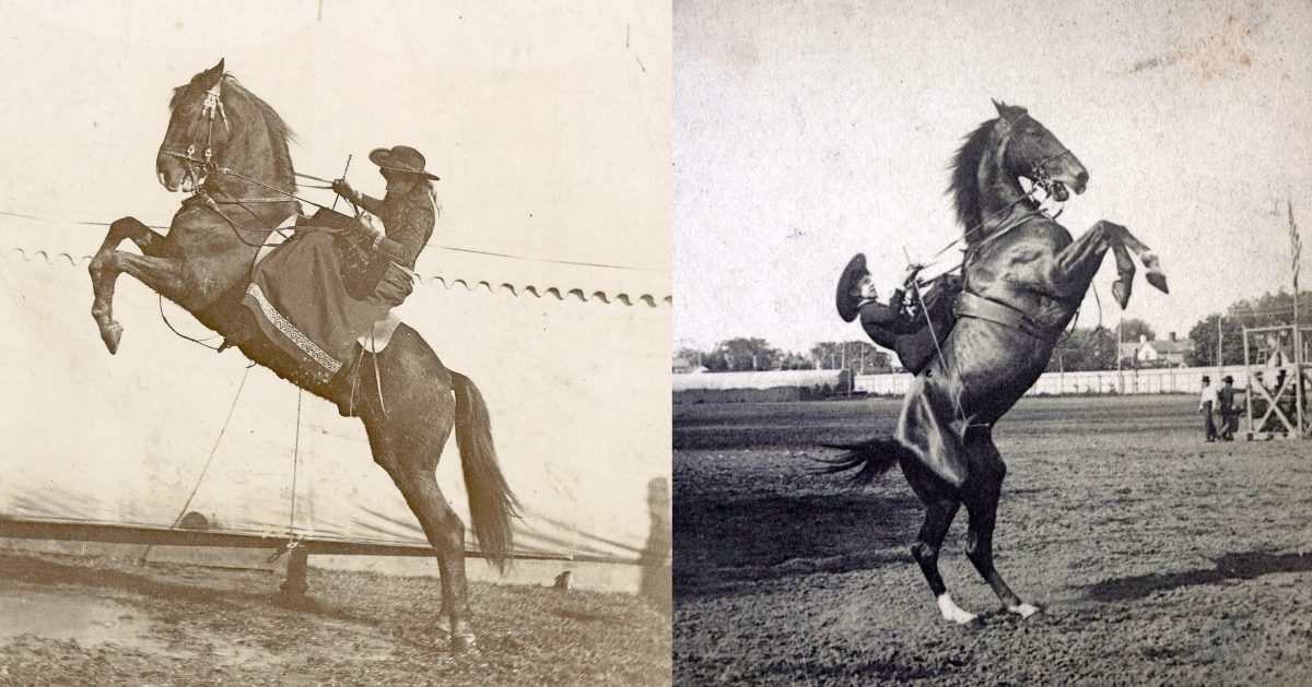 Oakley, Hickok and the other women in Buffalo Bill’s Wild West performed for predominantly Eastern audiences, who, while amenable to simulated war and death-defying stunts, would have been scandalized by a woman riding astride like a man, hence their reliance on the sidesaddle. The resulting combination of modest dress and extreme riding certainly thrilled onlookers, and Hickok became known as the “Queen of the Sidesaddle.”