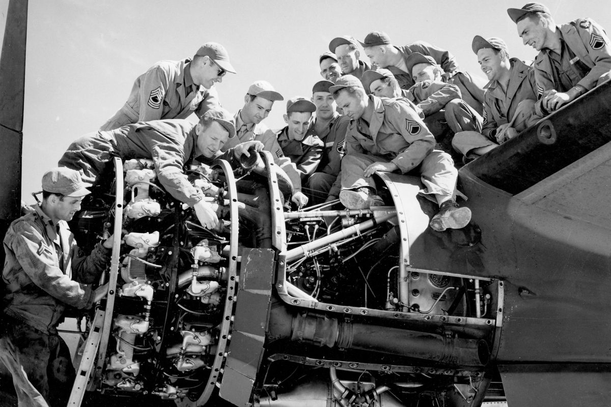 The R-2800 soldiered on after WWII—for example, as shown here in a U.S. Air Force Fairchild C-123 Provider undergoing maintenance. (Air Force Association)