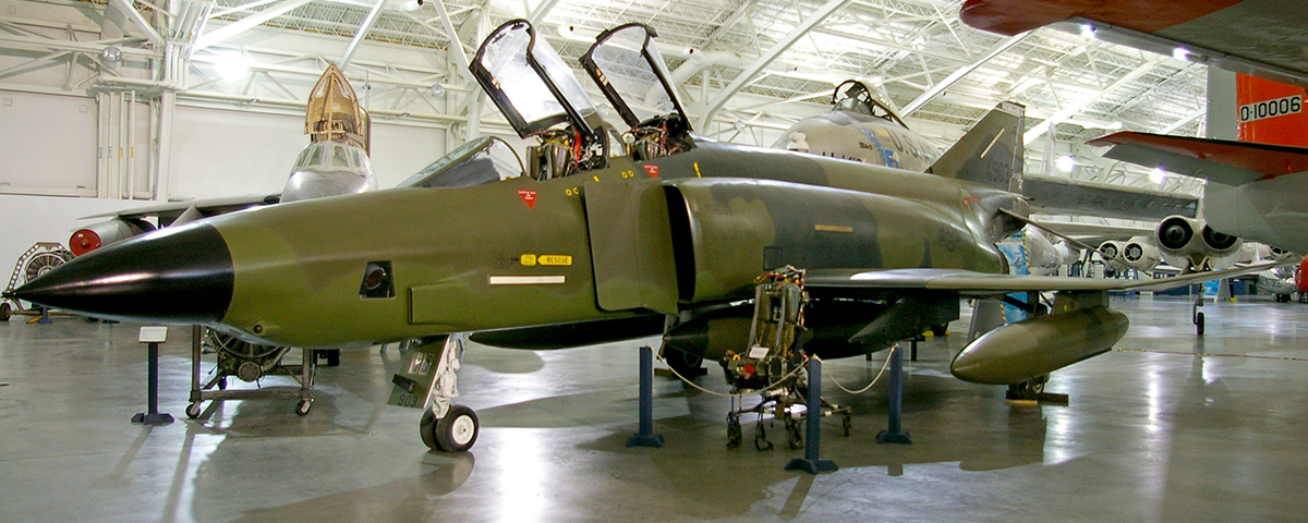 The McDonnell Douglas RF-4C Phantom II was a modification of the U.S. Air Force’s very successful F-4C and D model Phantom IIs, which served as the backbone of Air Force combat operations during the Vietnam War. The unarmed reconnaissance version was equipped with multiple cameras along with optical and infrared sensors tucked away in its elongated nose compartments. The optical cameras—still in place in 65-0903’s nose—were used primarily for low-altitude photography, but were also capable of producing quality high-altitude images. As with the Phantom’s fighter-bomber version, the crew sat in a tandem cockpit. The majority of photographic and sensor tasks were handled by the rear-seat pilot, but unlike the Navy’s RF-4Bs, the Air Force’s RF-4Cs had dual flight controls, so either crewman could fly the aircraft. A total of 503 RF-4Cs were produced over a 10-year period. USAF recce Phantoms flew their last missions in 1991, during Operation Desert Storm/Desert Shield.