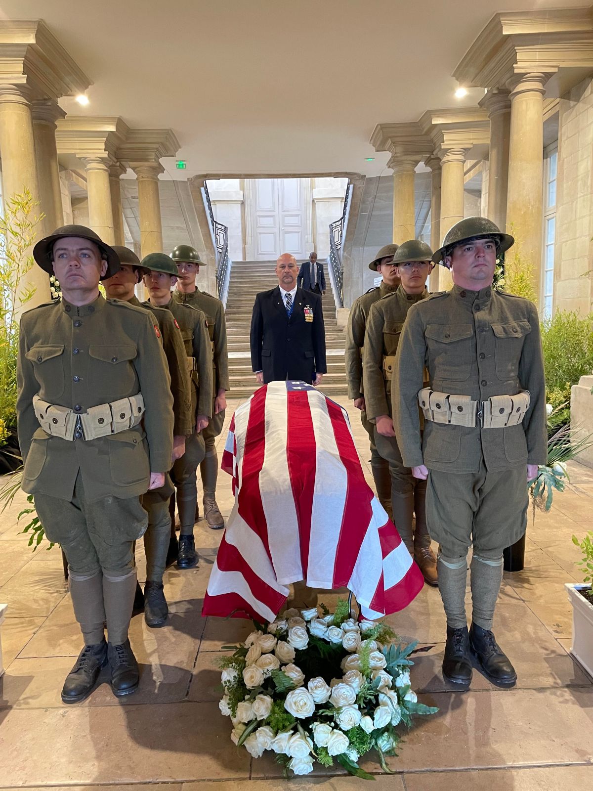 McIlvenna, a former U.S. Army paratrooper, said the welcome and embrace the group received from French and Americans along their path had been “overwhelming.” The October 23 ceremony in Chalons-en-Champagne, where the original selection occurred in 1921, included a replica casket draped with an American flag brought from Arlington and raised in each of the cemeteries they visited, as well as an original musical composition by U.S. Army Band “Pershing’s Own” arranger Sarah Corry.