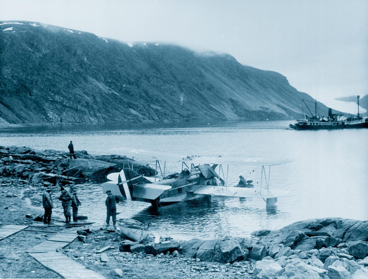 NA-2 was successfully salvaged and hoisted out of the water. Her engine was replaced with a spare, but she did not fly again during the expedition. The following day, NA-1 and NA-3 were flown to a fjord on Ellesmere Island where open water had been spotted on the earlier flight. There the pilots were able to bring their planes within 50 feet of the shore, enabling them to wade to the beach carrying a total of 200 pounds of food and 100 gallons of gasoline. At last an advanced base had been established, and the two crews could return to Etah knowing that longer flights were possible.