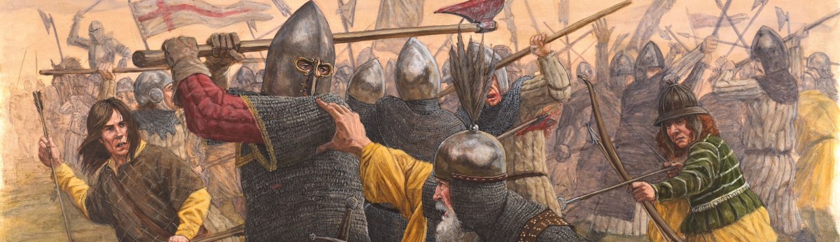 The English army—knights, yeomen, halberdiers and billmen—under Richard Talbot, Lord Deputy of Ireland and Archbishop of Dublin, stood arrayed on the field, bracing for the Irish attack. Suddenly, an advance force of skirmishers, unarmored and barefoot, rushed forward, hurling their light spears at the English ranks. As they ran back to their lines, a swiftly advancing wall of iron-helmeted Celtic giants descended on the English, screaming their battle cries to the cacophonous squealing of bagpipes. Each man carried a huge battle ax, and their momentum, bulk and determination carried them easily through the first English ranks as they skillfully wielded their terrible weapons to deadly effect.