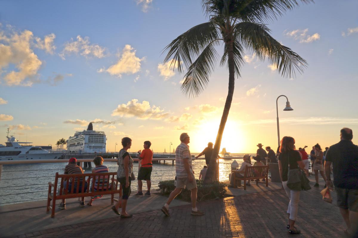 On any given evening, Key West, Florida, jitters and bustles. Duval Street, the main drag, is thick with revelers, gawkers, and locals, a scene out of a Jimmy Buffett lyric. At day’s end, crowds flock to Mallory Square for the sunset and, with giant cruise ships as backdrops, a panorama of hawkers and buskers.