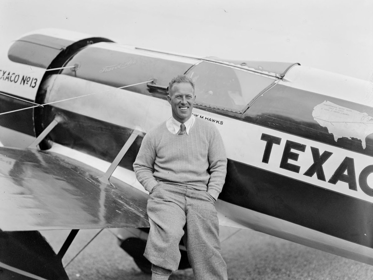 Frank Hawks was over the Pacific Ocean in a tropical storm at 18,000 feet when the engine of the prototype Northrop Gamma 2-E dive bomber he was piloting coughed and suddenly stopped running.