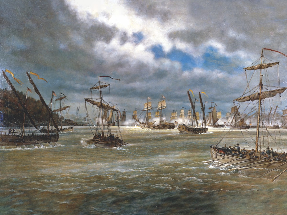 The Battle of Valcour Island, fought on Lake Champlain in 1776, was the climactic naval action of the Revolutionary War.