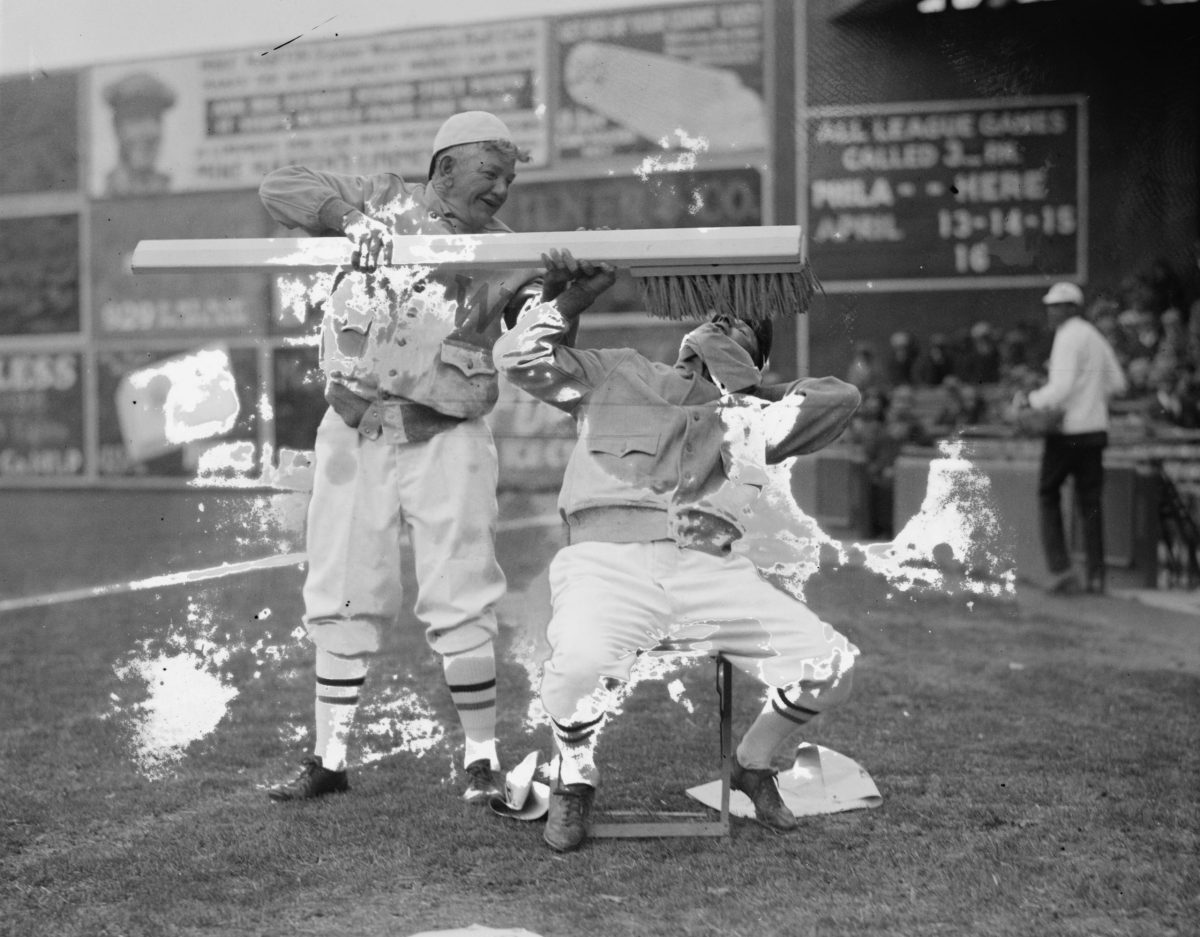 Nick Altrock, left, and Al Schacht, right, pitchers for the Washington Senators, were two of the most famous Baseball Clowns of the early 20th Century. The men would entertain the crowd with their comedy routines before and during games. Schacht would often wear a tuxedo jacket and top hat and occasionally ate a meal on home plate between innings. Altrock would wrestle himself and pretend to spike himself with his own cleat. Together, they would use oversized gag equipment, such as the toothbrush pictured here, and a large baseball glove, now housed at the National Baseball Hall of Fame in Cooperstown, N.Y. They boxed each other, pantomimed, and rowed boats during rain delays. Fans adored them and in 1922, the two were hired to perform at the World Series. Their salaries rivaled the great players of the era, including Babe Ruth, who was also a fan.