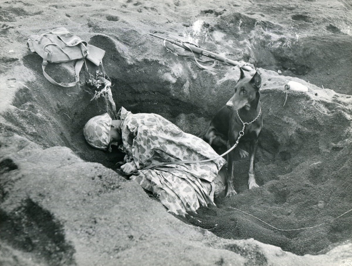 Chips, the German shepherd-collie-husky mix spent three and a half years in the Army, serving in North Africa, Italy, France, and elsewhere in Europe. But on a beach in Sicily on July 10, 1943, as The Washington Post puts it, it was “Chip’s date with history.” As U.S. forces were pinned down by an Italian machine-gun crew firing out of a hut, a determined Chips broke free from his handler and charged at the enemy. Moments later, with Chips bearing down on them, four soldiers emerged, hands in the air. For his struggle, Chips suffered a scalp wound and burns to his mouth and left eye, yet he continued to serve until the end of the war. Although it was later rescinded, he was the only animal to ever be awarded the Silver Star, the U.S. military’s third-highest medal for bravery in combat. According to the Post, Chips was also nominated for the Distinguished Service Cross (the second-highest award) and a Purple Heart for wounds he received while in Italy. Chips died peacefully back home in 1946. (National Archives)