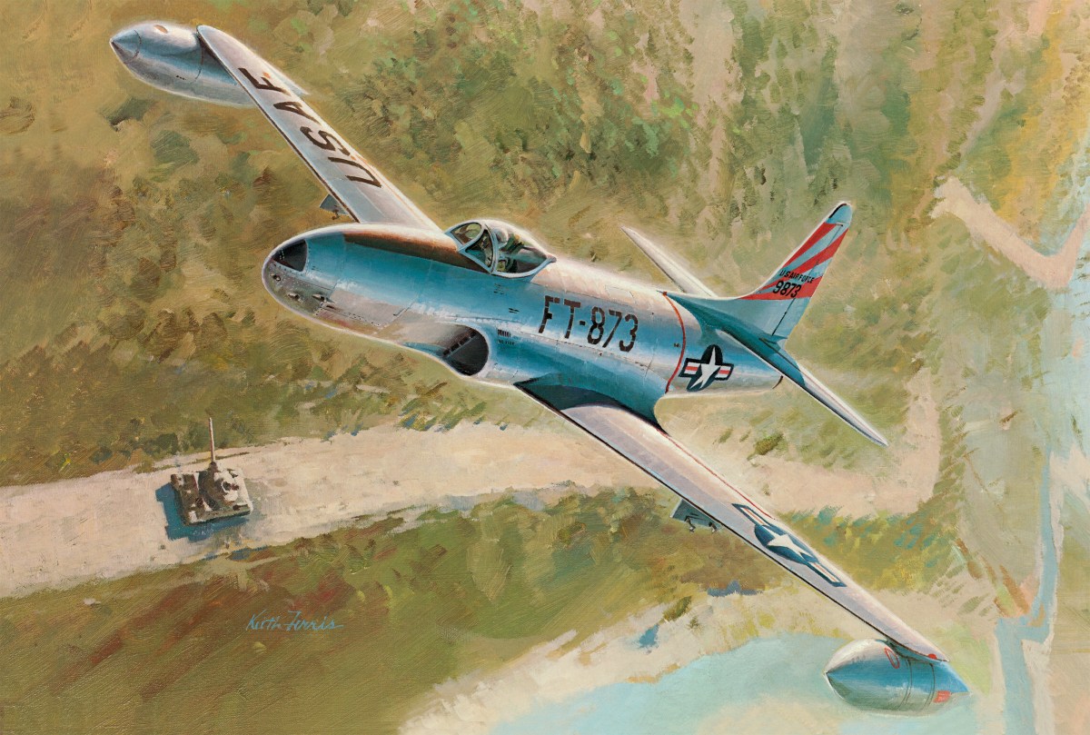 In 1950 the F-80C made its bones when it went to war in Korea. By that time, the 900 Shooting Stars in the Air Force inventory constituted roughly half of America’s fighter force, and many WWII piston-engine fighters had been relegated to National Guard and Reserve squadrons.