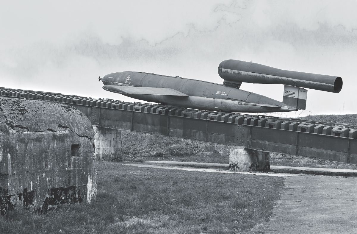 Purportedly launched by Adolf Hitler in retribution for the devastating Allied bombing campaign against German cities and towns, and precipitated by the D-Day landings, the V-1 was the first in a proposed series of Luftwaffe Wunderwaffen (“wonder weapons”). The “V” stood for Vergeltungswaffe (“retaliatory weapon”), a role for which the V-1 was well suited. It was an ingeniously designed pilotless aircraft, more than 27 feet long and weighing 4,740 pounds. Propelled by a gasoline-fueled pulse-jet engine with a top speed of 400 mph and an operational range of 160 miles, it carried a warhead packed with 1,870 pounds of Amatol, a high-explosive mix of TNT and ammonium nitrate. Catapulted from an inclined launch ramp pointed roughly toward its target, the V-1 relied on a guidance system comprising gyroscopes, a magnetic compass, barometer, vane anemometer and an odometer. The flying bomb maintained a cruising altitude of around 2,000 to 3,000 feet until it reached the vicinity of its target, when a cutoff device set the rudder in neutral, putting the V-1 into a steep terminal dive.