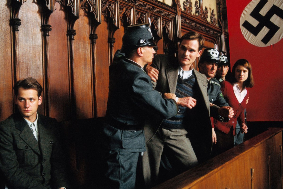 When additional evidence surfaces, however, and Sophie learns that her brother Hans has confessed, she turns defiant: “Yes, I did it. And I’m proud of it.” Then she eloquently denounces Hitler’s regime for its crimes, many of which she has heard about from friends on the Eastern Front who have witnessed massacres and seen evidence of the Jewish population’s extermination.