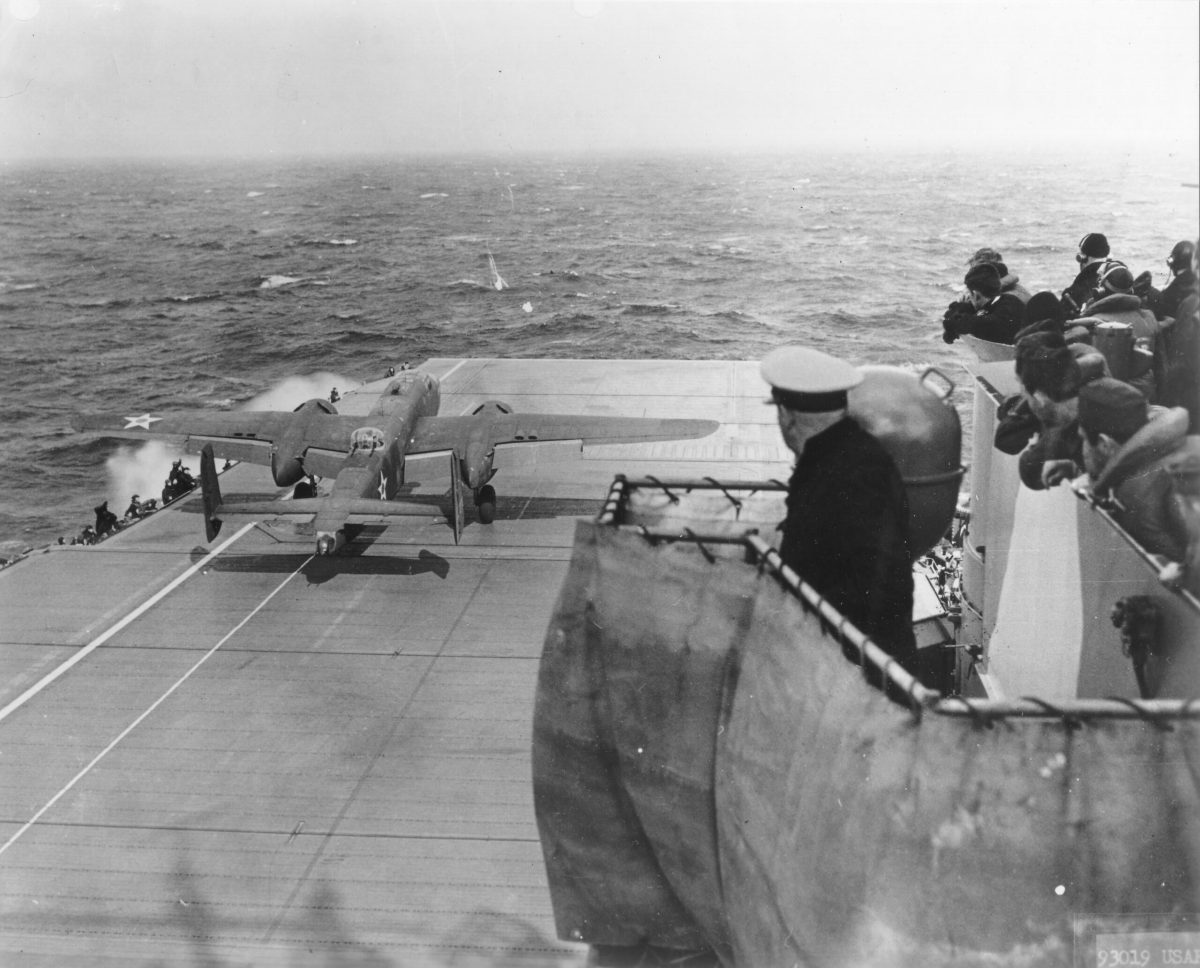 On February 2, 1942, two B-25s were hoisted aboard the USS Hornet, the Navy’s newest carrier, at Norfolk, Va. A few miles off the Virginia coast, the lightly loaded bombers were fired up and took off without difficulty. The Hornet was then ordered to proceed to the West Coast for its first war assignment.