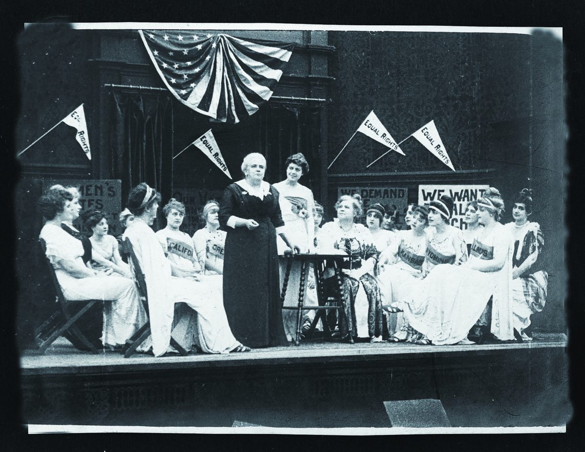 With McCormick as an adviser, the Selig company dotted the film’s 400-plus member cast with stage stars. Veteran performer Katherine Kaelred would play a lawyer, rising ingenue Olive Wyndham would star, and Grace Darmond would reappear throughout as “Equal Suffrage,” a symbolic figure who makes clear the moral encountered in every plot turn. NAWSA leader Dr. Anna Howard Shaw would portray herself addressing a suffrage convention. Giles Warren, supervising producer of the Selig Chicago lot, directed. Warren conferred daily with McCormick on production and adherence to message.