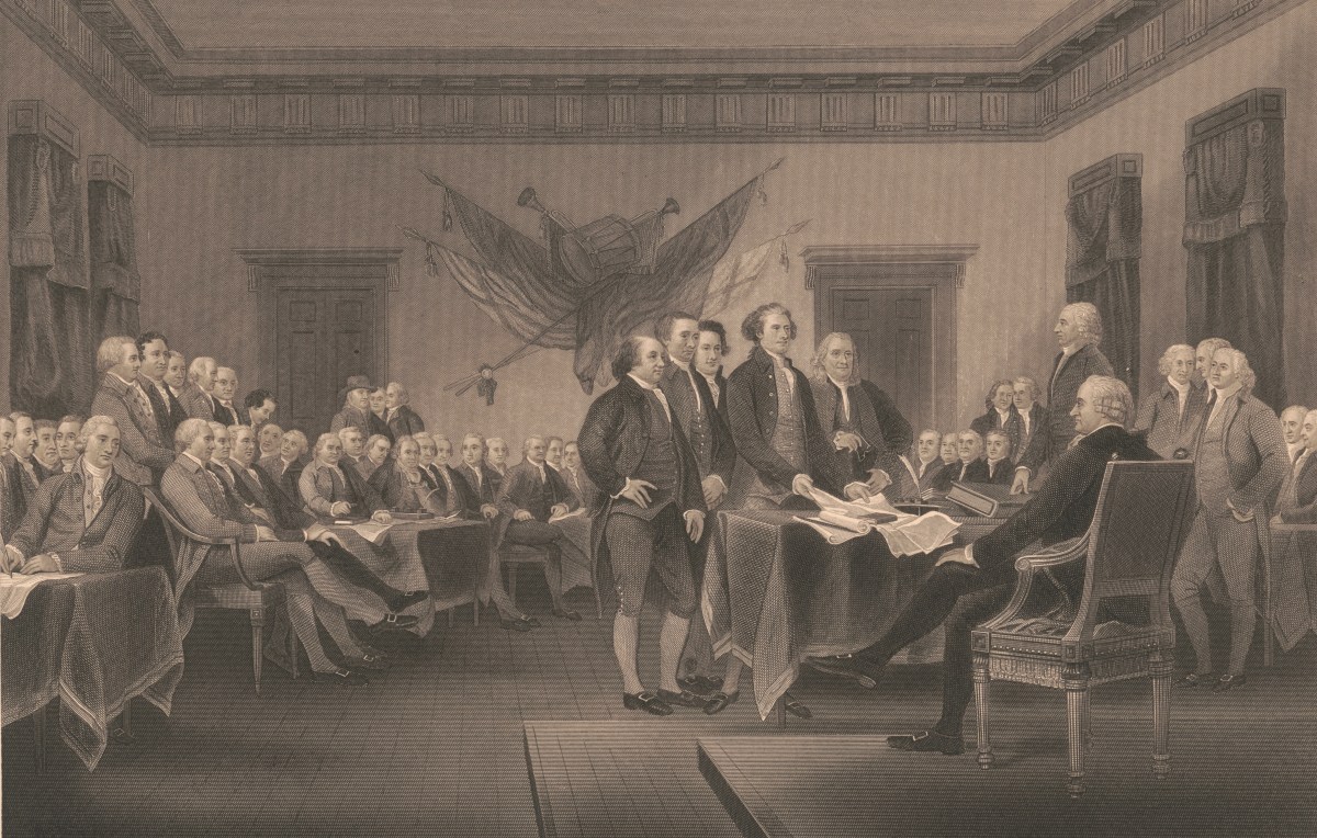 Anything but celebratory. That’s how Benjamin Rush of Pennsylvania remembered the atmosphere in the Continental Congress in Philadelphia when delegates affixed their signatures to the Declaration of Independence: A “pensive and awful silence pervaded the house as we were called up, one after another, to the table of the President of Congress,” Rush said, to sign “what was believed by many at that time to be our own death warrants.” The British government considered the Declaration of Independence a treasonous document. And treason was a capital crime.