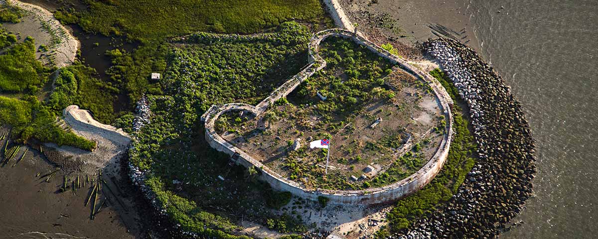 Our major worry during the one-mile cruise from the Carolina Yacht Club to Castle Pinckney—the long-abandoned Civil War fortress on obscure Shutes Folly—was whether we could stand the stench of the myriad droppings of pelicans, the tiny marsh island’s main inhabitants. So we figured a coating of chest rub (a.k.a. “topical analgesic”) under our snouts might blunt the work of the pesky Pinckney pelicans.