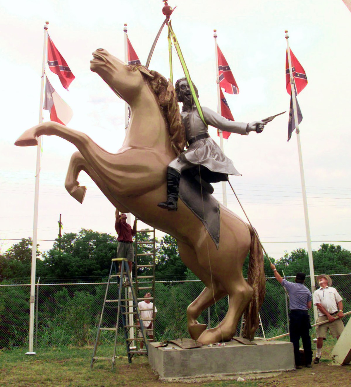 Unlike other Civil War statues erected on public land, the cartoonish tribute to the Confederate general was on private land and thus had repelled previous attempts for removal.
