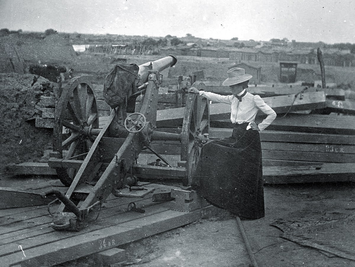 Lou Henry Hoover, who would become First Lady to President Herbert Hoover in 1929, was only 26 when this cannon, among others, began shelling her. She and her new husband were trapped on the other side of the world, in the Chinese city of Tianjin in 1900, during the Boxer Rebellion. There as an engineer, Herbert helped design makeshift defenses. Lou Hoover, on the other hand, tucked her revolver into her waistband, hopped on her bicycle and rode to the front lines.