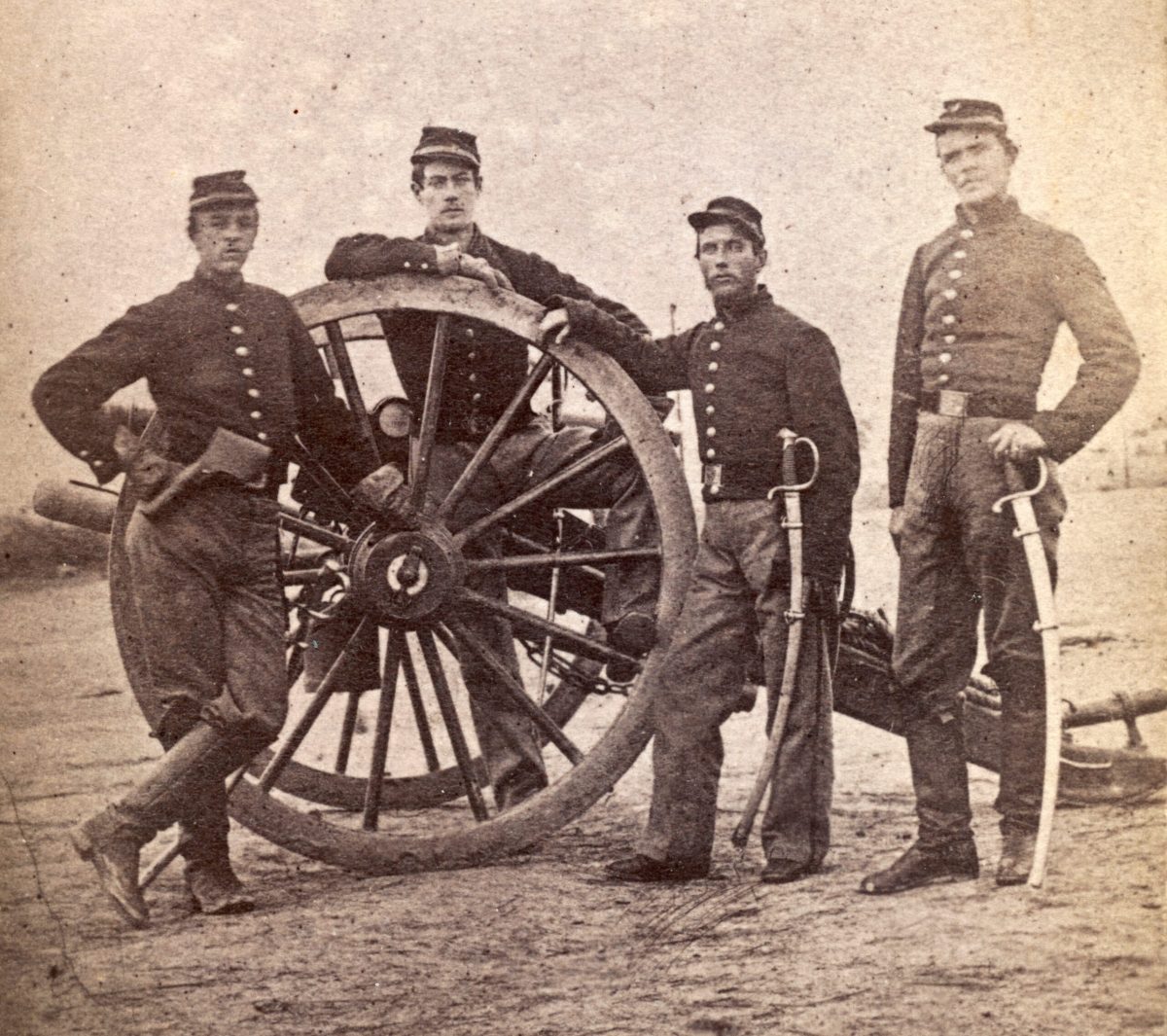 While working on our Autumn 2023 issue, which includes a fascinating story about the daring exploits of Battery G, 1st Rhode Island Light Artillery, at Petersburg on April 2, 1865, we came upon this Mathew Brady photograph. It’s part of a Brady series called “Illustrations of Camp Life.” Four men from Battery C are shown, not Battery G, and it is from early in the war. That, however, doesn’t matter. The men who joined these batteries representing the country’s smallest state were a familiar lot and would earn a reputation as perhaps the best cannoneers in the entire Union Army. Brady provided only the last names of the four corporals here: Neville, McLaughlin, Hanna and Perrin (left to right). And, unfortunately, all four were killed during the fighting.