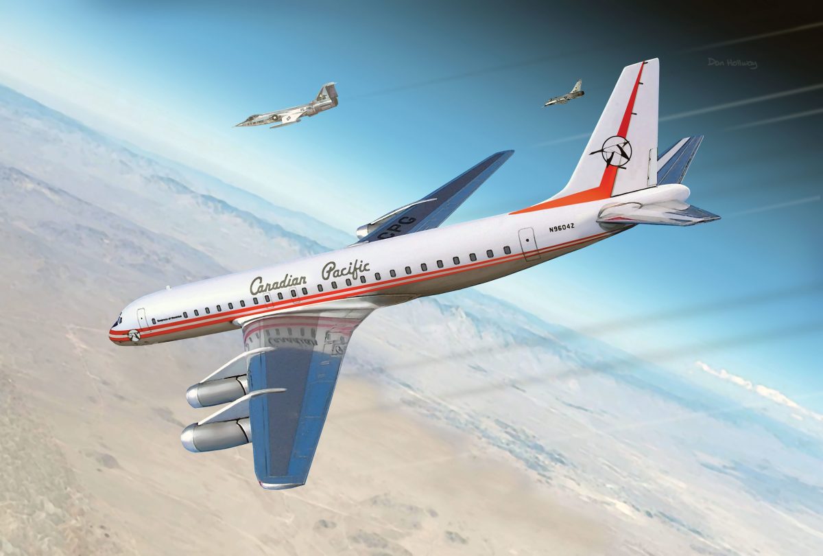 Douglas had a lot riding on the flight. Over the previous decade Boeing had just about locked up the market for military bombers with its B-47 and B-52. Now with Boeing’s new 707 jet airliner (first flown in December 1957), the company was seeking to do the same to the commercial market. Douglas had gained a huge head start in the airliner business with its legendary prewar DC-3, but its new four-jet DC-8 had not flown until six months after the 707 took off.