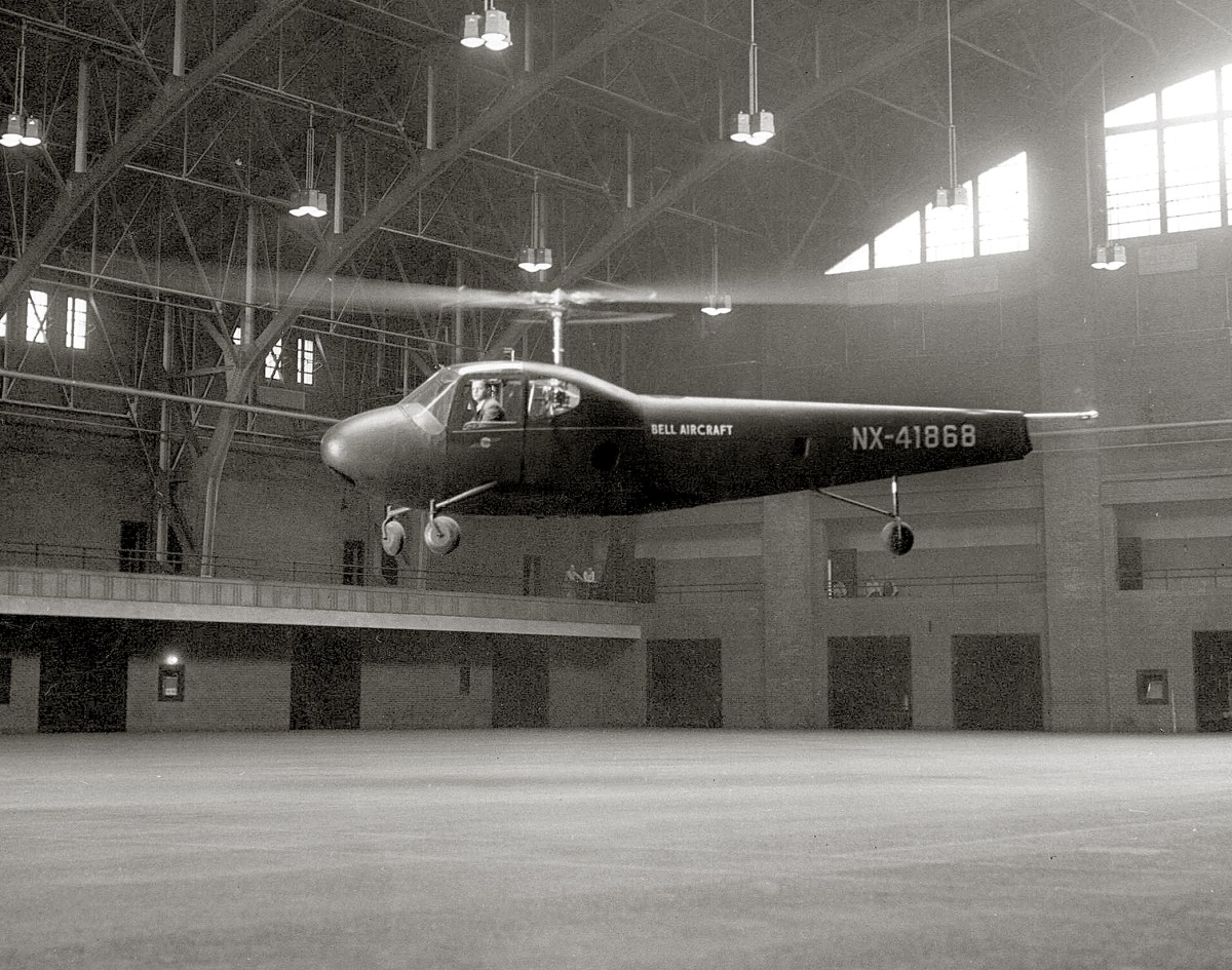 The iconic bubble-canopy Bell 47, the first helicopter certified for civilian use, was born in an abandoned car dealership.