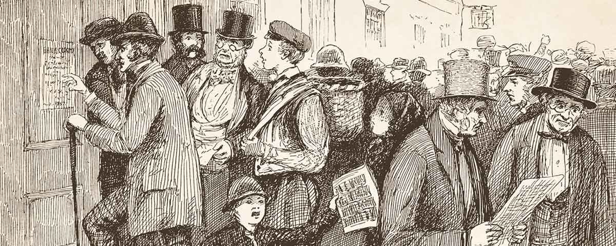 New York lawyer George Templeton Strong’s diary reveals that sectional issues did not always prevail. In 1857, Strong’s voluminous entries contain no mention of the Dred Scott decision but accord detailed coverage to the economic collapse. “We seem floundering,” he recorded on October 10. “Affairs are worse than ever today, and a period of general insolvency seems close upon us.” Four days later, with “Wall Street blue with collapse,” Strong exhibited great uncertainty: “Whether we’ve really reached the nadir, no one can tell.” Toward the end of the month he lamented that the “Depression continues….the tide is still running out and everything is drifting down with it, or else stuck fast already on the black mud flats of insolvency and destined to rot there and perish long before the tide comes back again.”