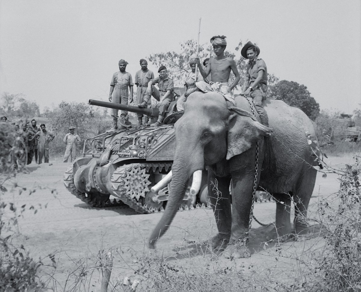 The elephant remained central in Asian warfare for thousands of years, from the wars of Alexander the Great to the Burma Campaign of World War II. In 1950, British Field Marshal Sir William Slim recalled the vital role elephants played during the British occupation of Burma: “To watch an elephant building a bridge, to see the skill with which the great beast lifted the huge logs and the accuracy with which they were coaxed into position, was to realize that the trained elephant was no mere transport animal, but indeed a skilled sapper.…It is the elephant’s dignity and intelligence that gained our real respect.”