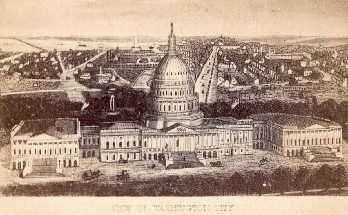 In 1790, Congress passed the “Residence Act,” putting in place a plan to create a capital city for the new United States. The following year, President George Washington chose the location for it on land ceded from Maryland. Construction on the capital began in 1793, only to be delayed by lack of funding and being burned during the War of 1812. The U.S. Capitol Building, the focus of this Civil War-era lithograph, was finally completed in 1826. This was how Washington, D.C., appeared when the Revenue Bill of 1862 became law in July 1862.