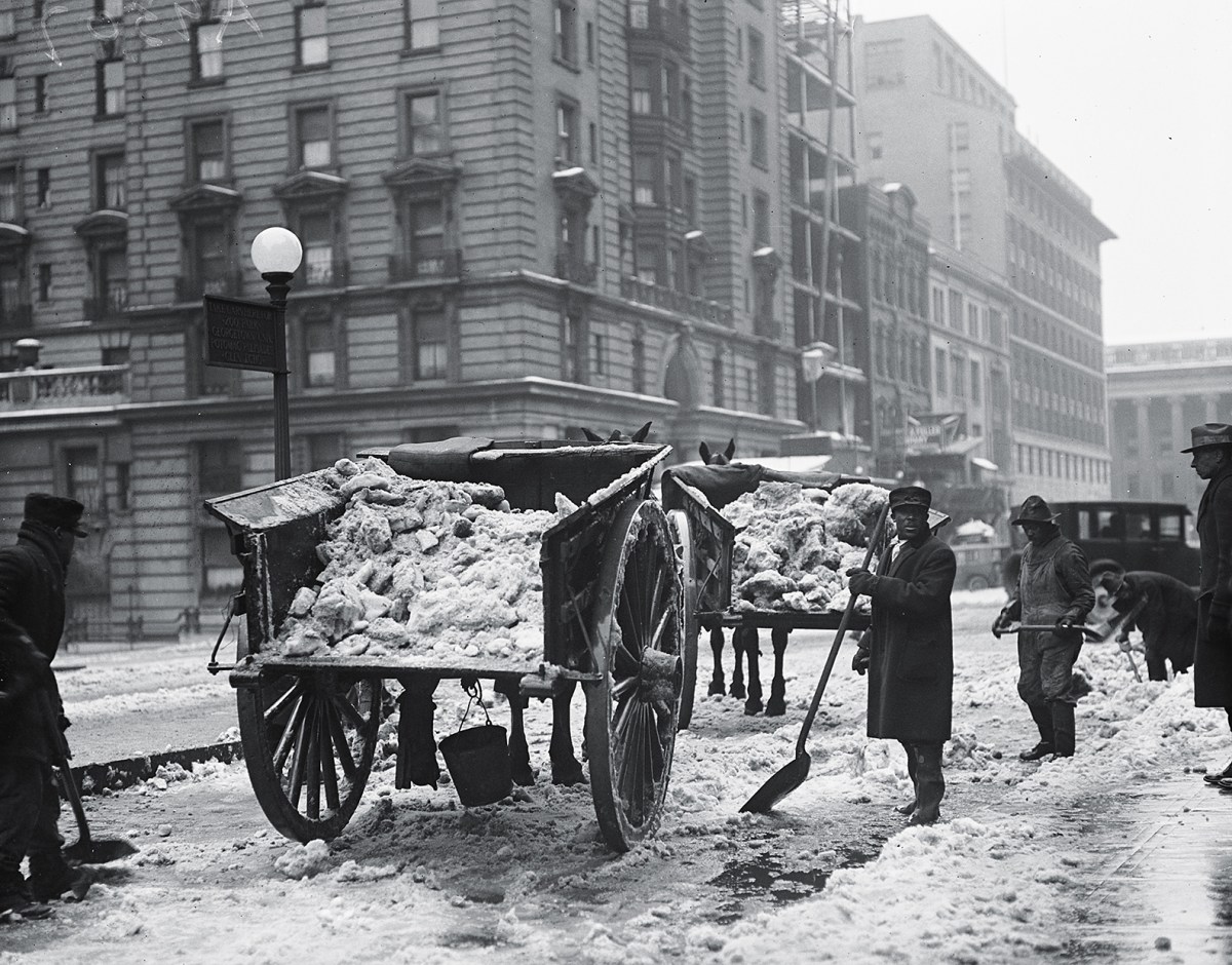 These 1920s street clearers had their work cut out for them. Using only rudimentary tools like shovels and horse drawn wagons, they toiled to clear several inches of snow off the Washington, D.C. streets. News articles from the early 1900s mention the city had trouble convincing people to sign up for the difficult work.