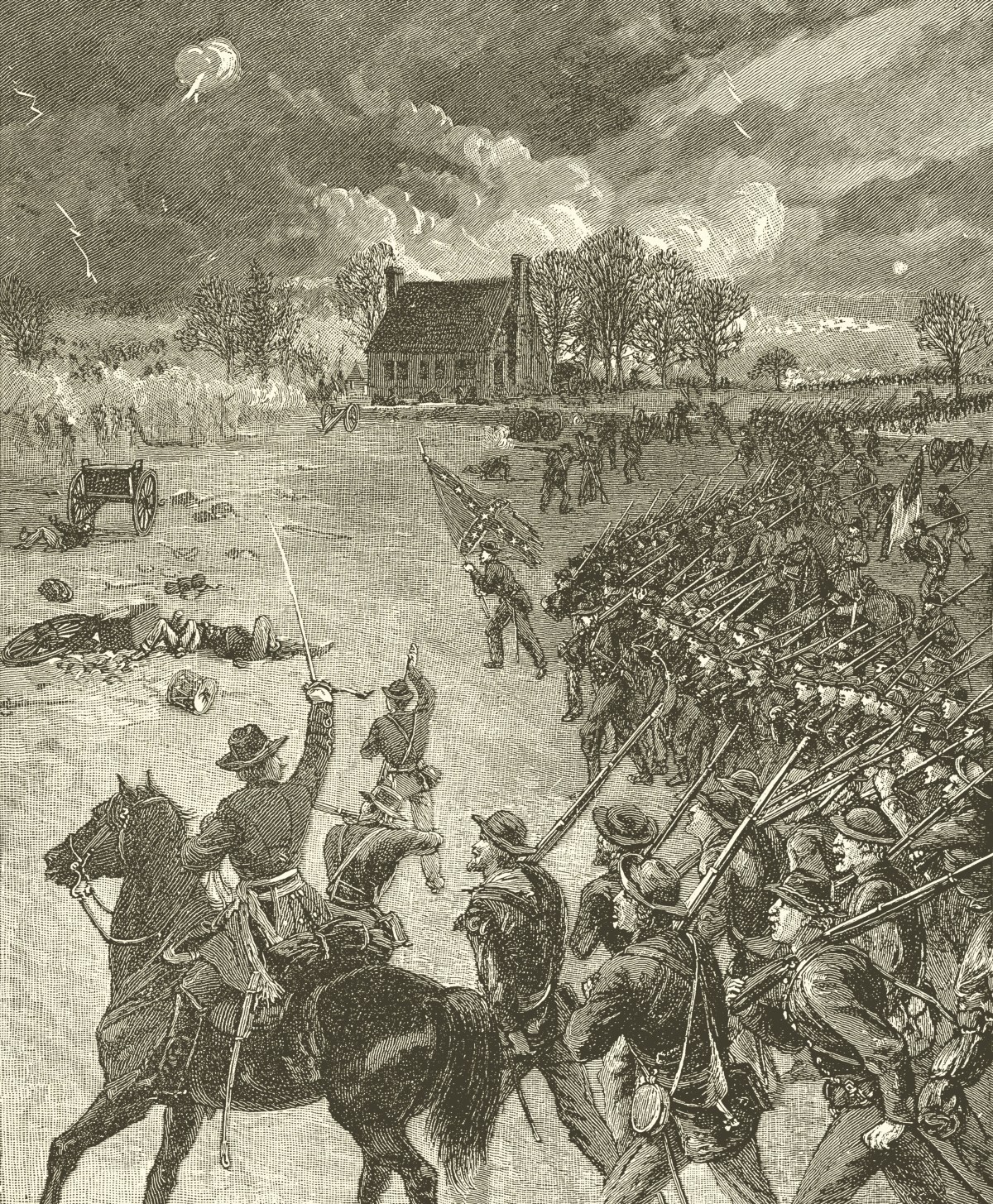 General Schimmelpfennig, an educated soldier, but not very brave, cried out: “Take away that horse, don’t show any blood here—take him to the rear!”