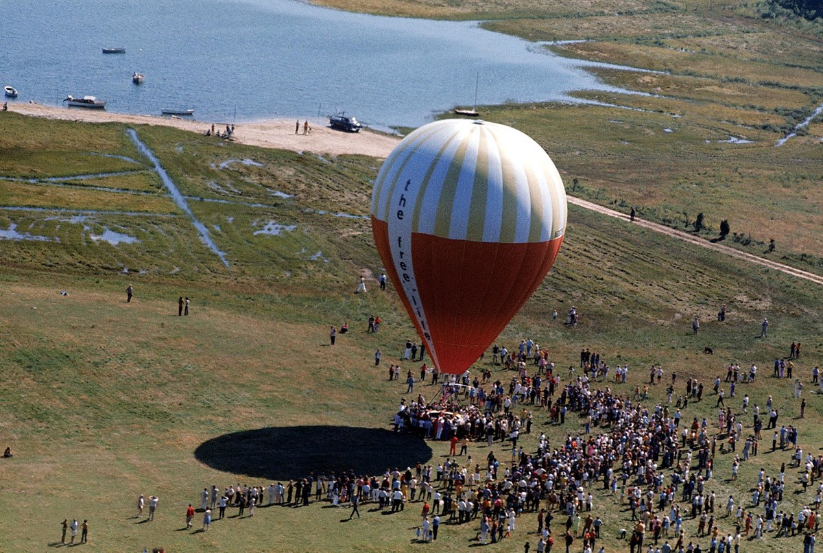 The weather was perfect for launch day, Sunday, September 20, 1970. More than 1,500 people gathered in George Miller’s pasture on Long Island near a village called Springs to watch the preparation of the red, white and yellow balloon. The inflation process took most of the night, and Anderson, Brown and Brighton had gotten little sleep. But by midday the three heroes were center stage, sharing their moment of glory with friends and family. Anderson looked authoritative in his yellow jumpsuit. Brighton radiated confidence with his charming British accent and tousled blond hair, completing the look of an aristocratic explorer with a pipe clenched in his teeth. Brown flashed a movie-star smile, capturing the highlights of the day with her handheld Super 8 camera.