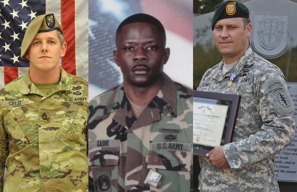 All three soldiers previously received valor awards for their actions — Cashe and Plumlee were awarded the Silver Star, and Celiz received a Bronze Star with V device.