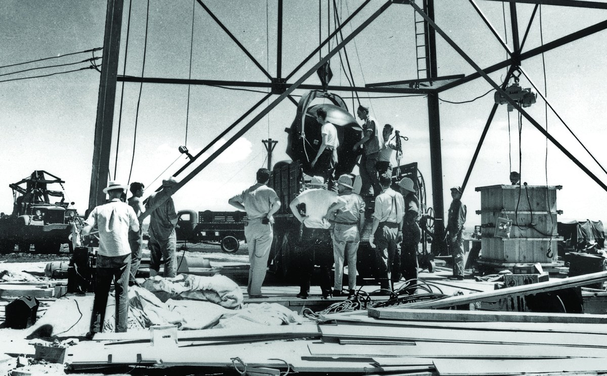 Of course, the Trinity Test was still at the mercy of the weather, war’s most irascible factor. Planners had very little historic meteorological data and, like many of New Mexico’s high deserts, the Jornada has its own particular weather patterns. In March 1945, Trinity’s new chief meteorologist, Jack M. Hubbard, had to pinpoint a window for testing—clear and dry, with calm winds and stable atmospheric temperatures. To avoid a tropical system, he recommended July 18 to 21; a higher-up set the date for July 16. “Right in the middle of a period of thunderstorms,” wrote Hubbard in his diary, “what son-of-a-bitch could have done this?” That would prove to be President Harry S. Truman, hoping for a big reveal at Potsdam. Fortunately for Truman, rain and winds subsided, delaying the 4 a.m. ignition by only 90 minutes.