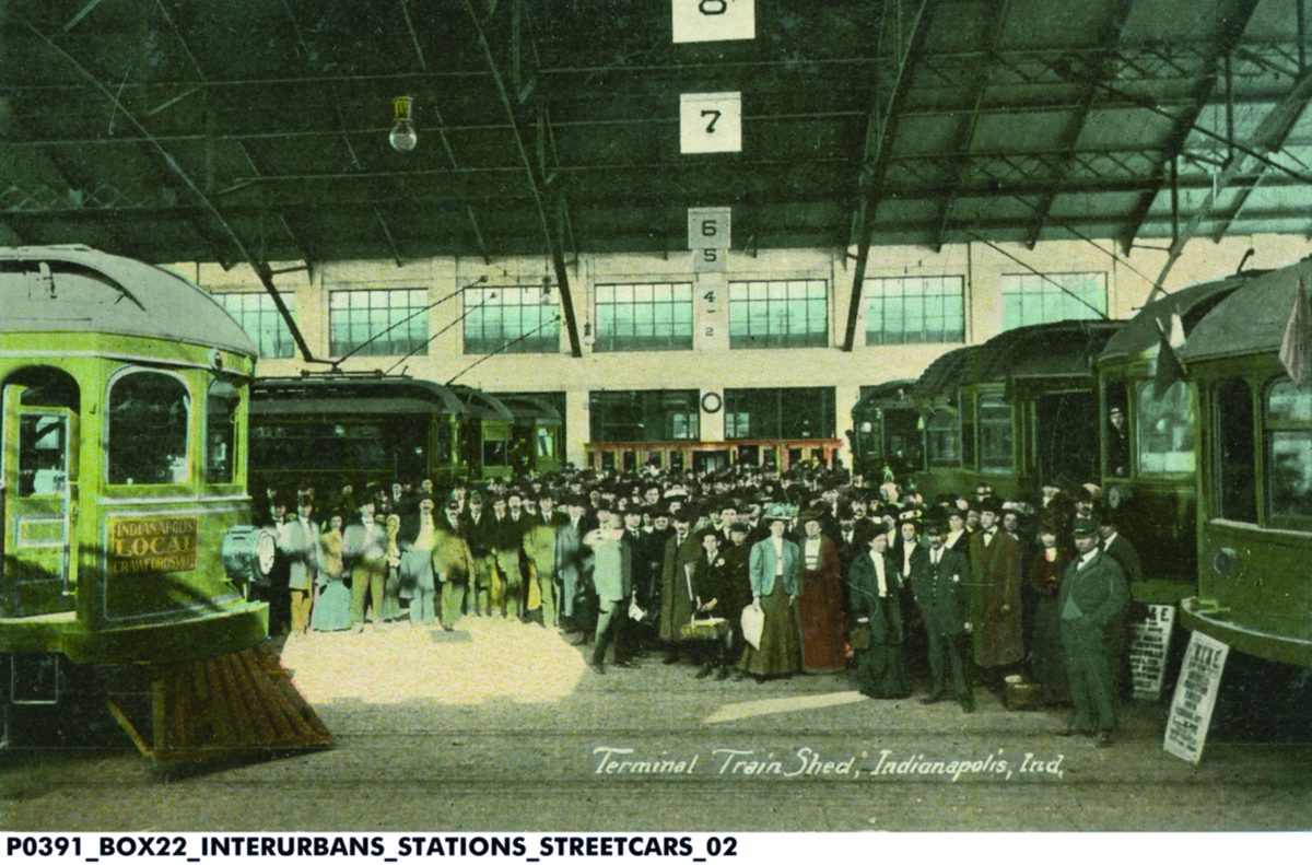 ON WEEKDAYS IN THE 1910s, the waiting room at the Indianapolis Traction Terminal welcomed hundreds of travelers—men wearing straw boaters or derbies, women in wide-brimmed hats and ankle-length skirts—debarking from or waiting to board trains to and from South Bend and Terre Haute, Indiana, Columbus, Ohio, and elsewhere. At the adjoining train shed, 500 trains, operated by 12 interurban railway lines, came and went daily, carrying some seven million passengers a year. Indianapolis Traction was the nation’s largest interurban terminal. By 1941, the trains were gone. The building became a bus terminal, was shuttered in 1968, and in 1972 was torn down—a capsule history of American interurban electric rail. The site of the interurban terminal, demolished in 1972, now is the location of the Hilton Indianapolis.